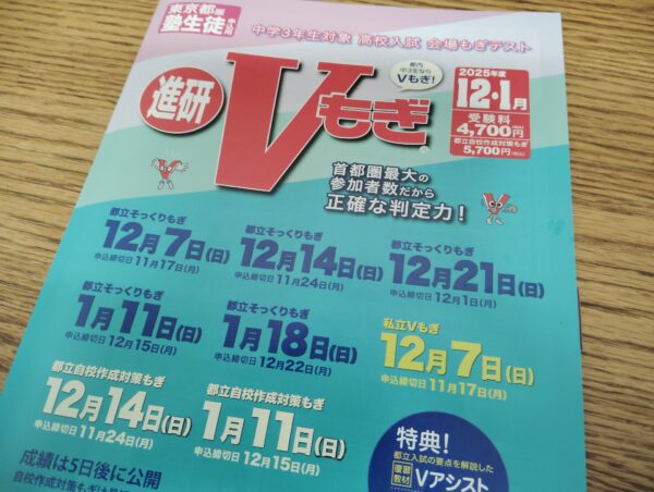 中3息子、2025年12月に実施される、進学研究会主催の都立自校作成対策もぎを受験予定です。