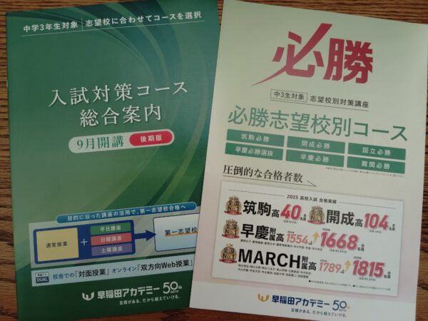 中3必勝志望校判定模試(早稲アカ)の合格基準点・結果(2025年8月31日)
