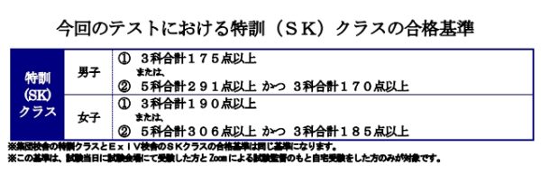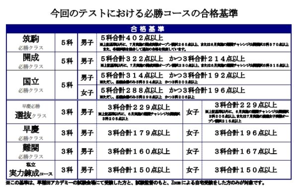 9月8日、早稲田アカデミーonline上で特訓クラスの合格基準が公開されました。