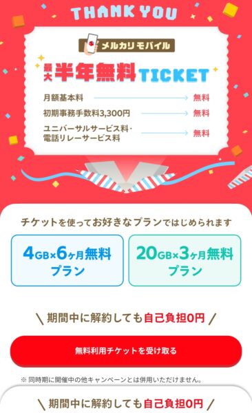 先日メルカリから、タイミングよくダイレクトメールが届いて、「メルカリモバイルの最大6ヶ月無料チケット」をゲットしました。