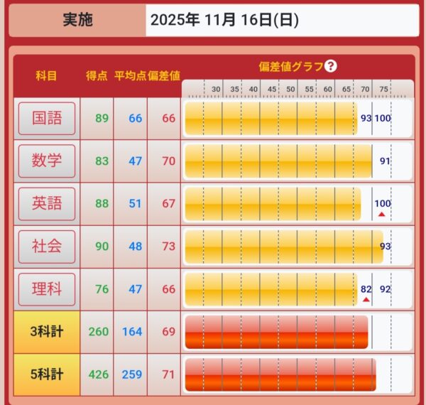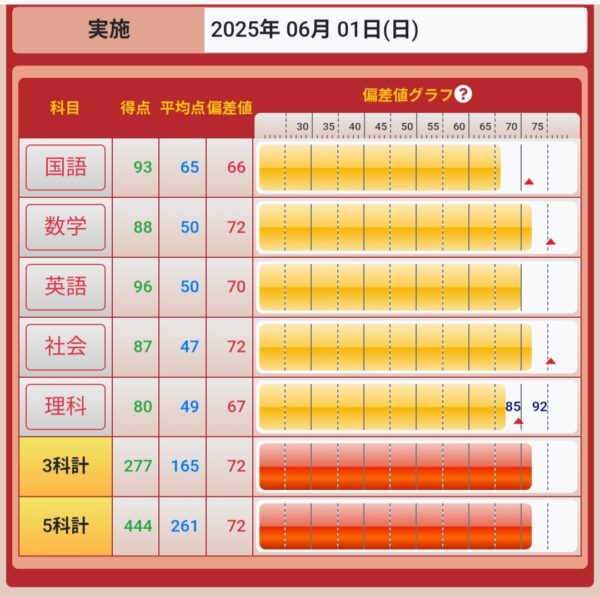 6月 72(5科目偏差値)